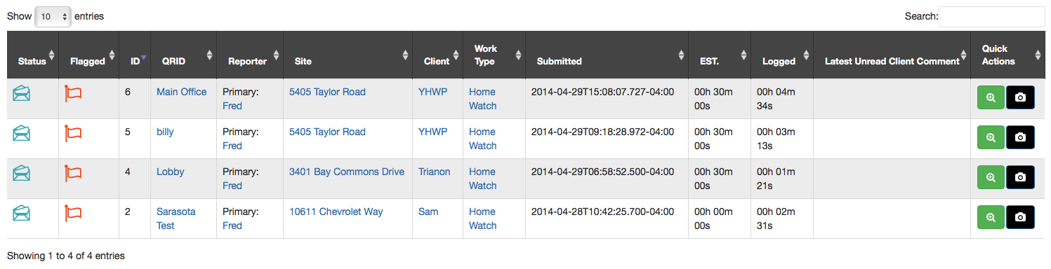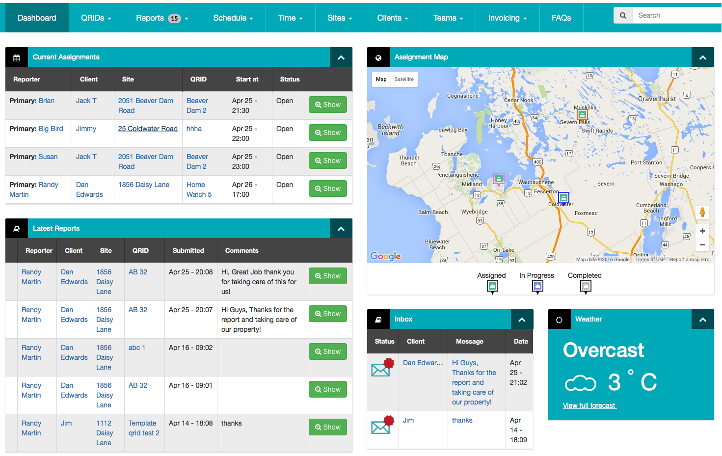 Simply scan the appropriate QRID card when you arrive, choose your checklist, fill out the report with comments and photos, and send it directly to your client's dashboard for them to review! An optional email will notify the client that they have a new report.